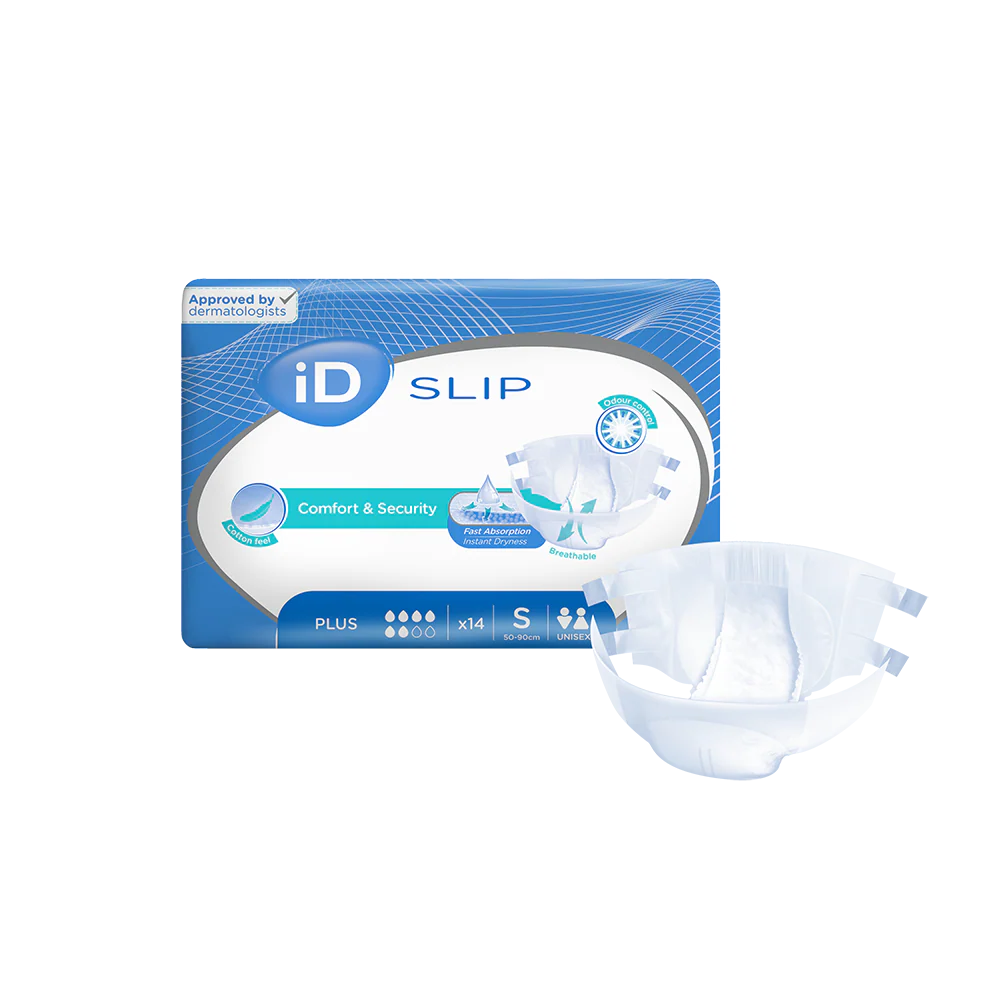 iD Expert Slip Plus all-in-one briefs provide a reliable solution for managing moderate to heavy incontinence. These high-absorbency slips offer secure anti-leak protection and optimal comfort, with resealable tabs and wetness indicators to support daily care routines.